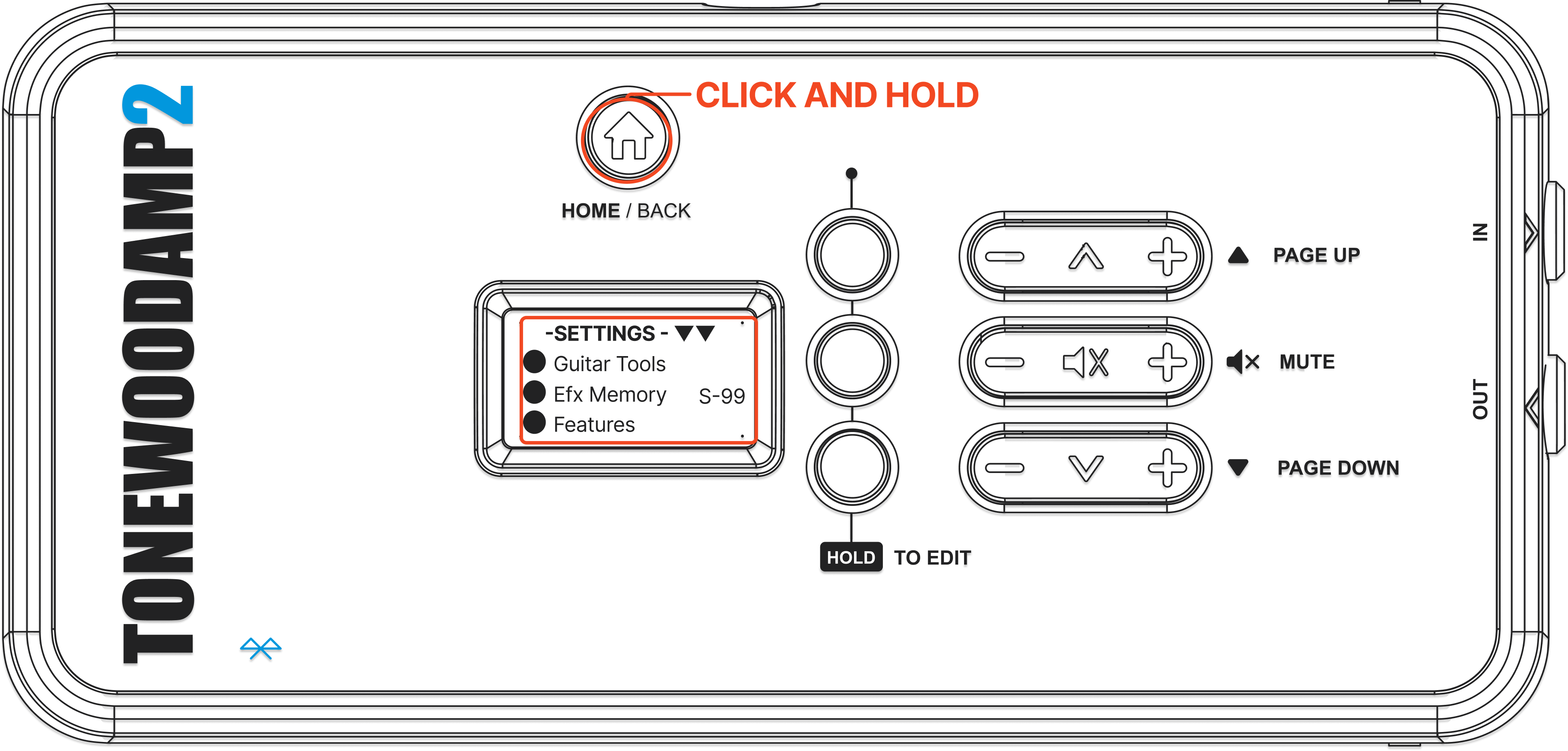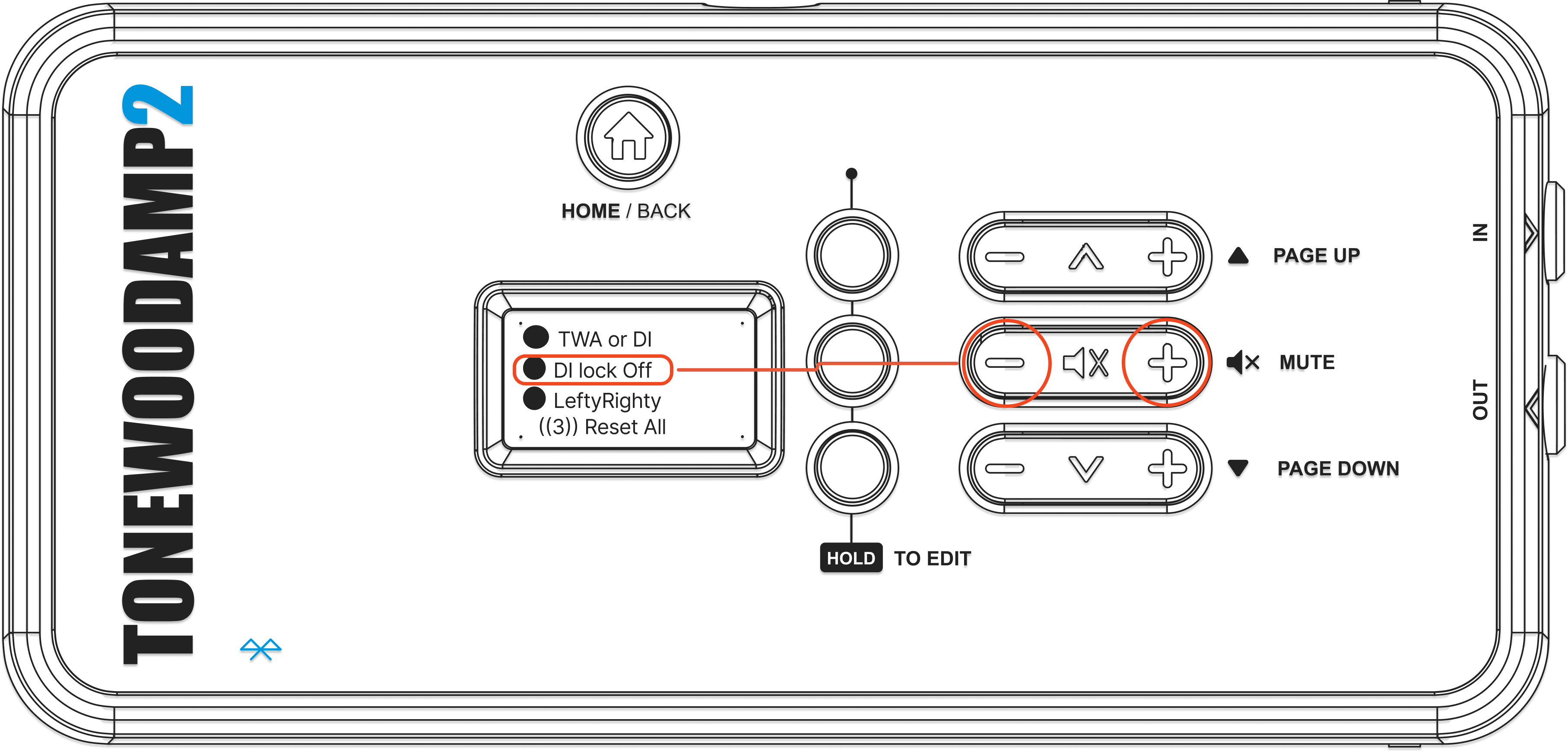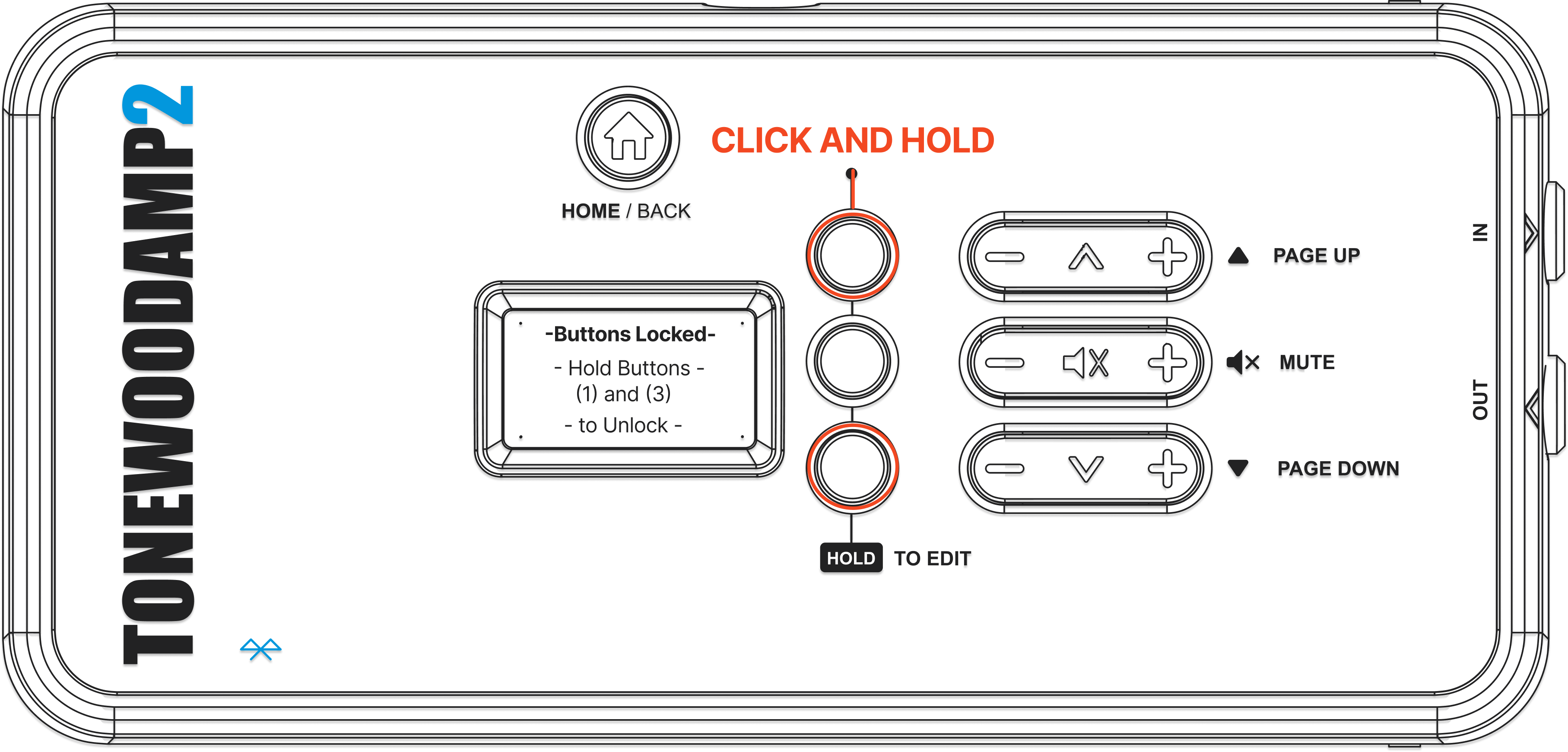 Lock the buttons on the ToneWoodAmp2 while playing live to avoid accidental settings changes when plugged into an amp or PA.