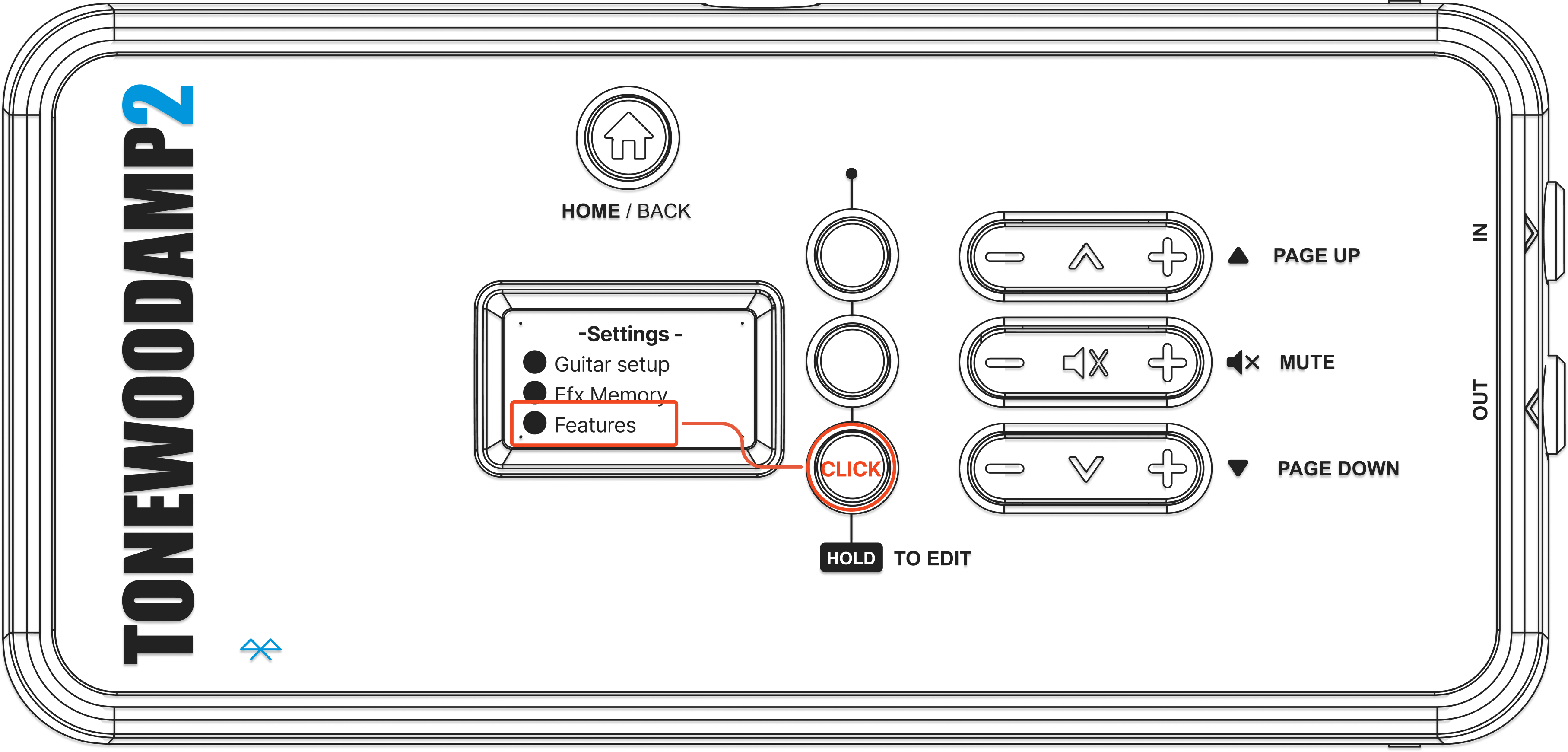 Note, this feature is only active while the unit is plugged into an amp or PA.